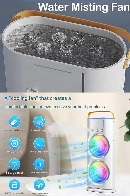 Quickly Cool Down: Beat the heat this summer with our Portable Air Conditioner Fan, equipped with cutting-edge spray technology and a dual-head nozzle, providing quick relief from high temperatures for a refreshing and icy cool ambiance.